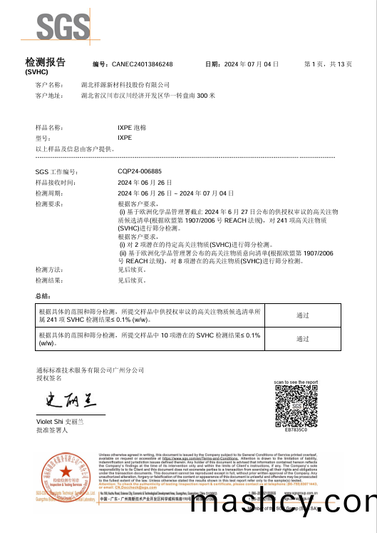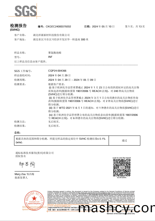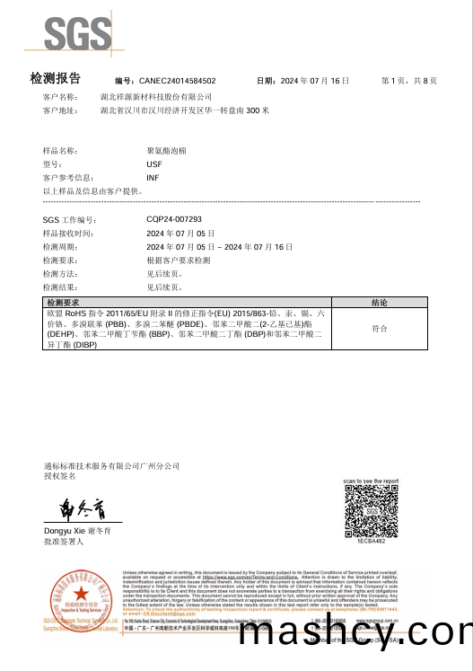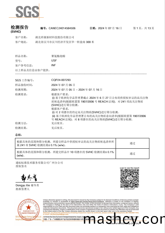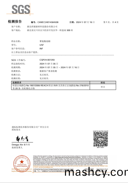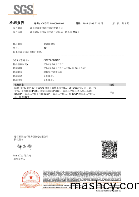 阻燃聚(ju)氨酯(zhi)PU泡棉REACH报告-CH