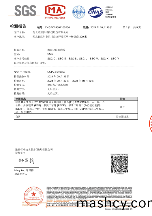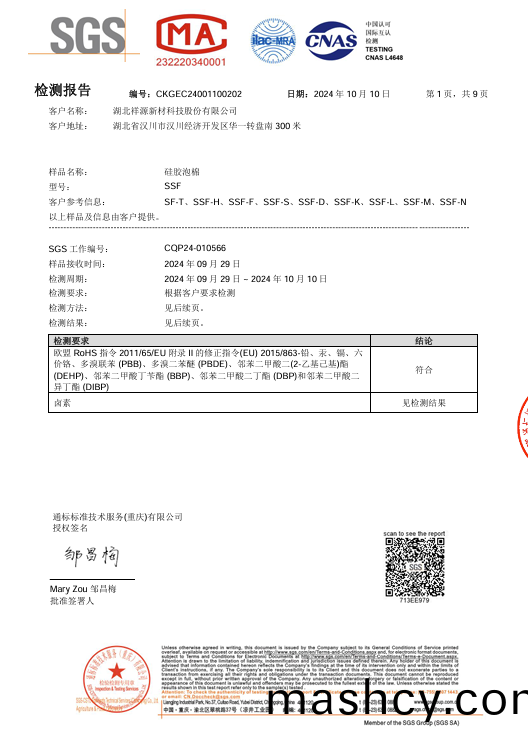 聚氨(an)酯(PU)泡(pao)棉 ROHS2.0中文(wen)测(ce)试(shi)报(bao)告