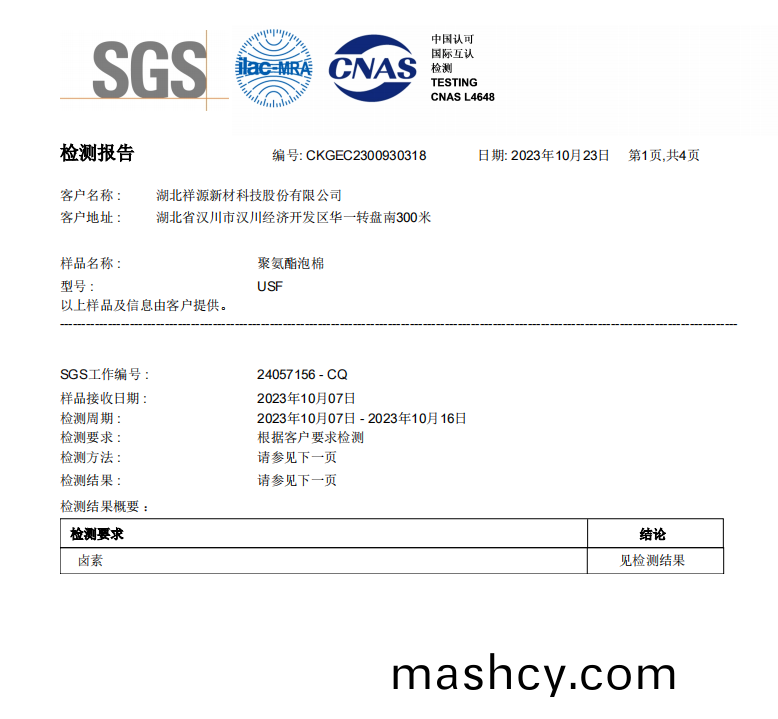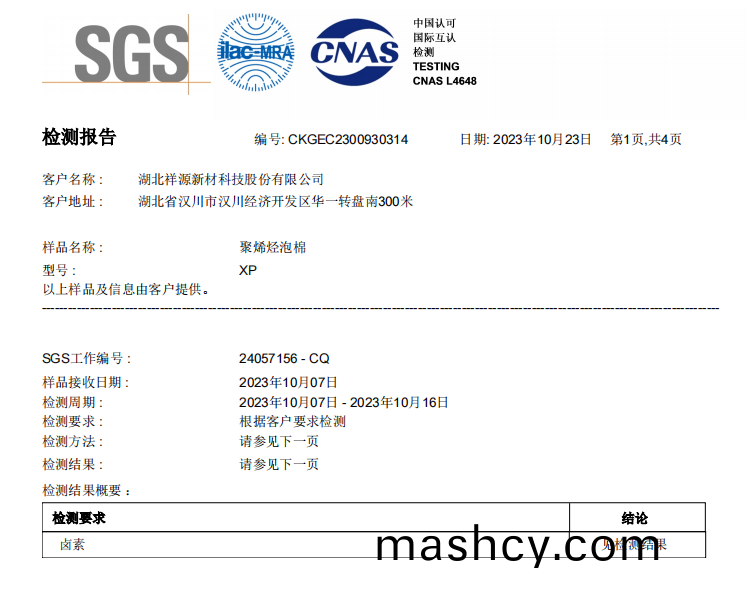 聚烯烃泡棉(mian)卤(lu)素--中文测试报告