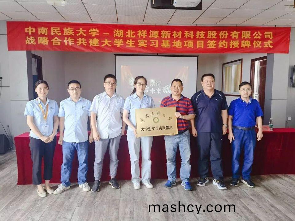 2021年7月19日,正值盛夏、在这神(shen)清气(qi)爽的美好时节,我们心怀美好的祝愿,在(zai)公司活动室隆重举(ju)办了中南民族大学-湖北祥源新材科技股份有限公司战略(lve)合作共建大学生实(shi)习基地项目签约授牌仪式。出席仪式的领导有中南民族大学化学与材料学院:邓(deng)书记、郭书记、张(zhang)老师(shi)及(ji)公(gong)司各部门领导代表。